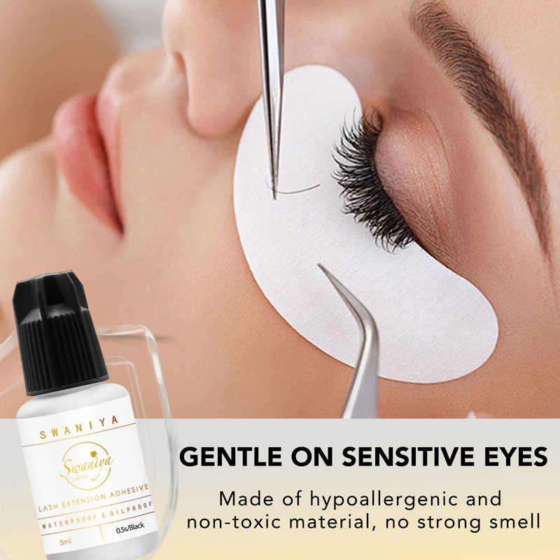 Swaniya jest nie tylko silny i trwały, ale także delikatnie na naturalnych rzęsach. Jego nisko zwalniona formuła minimalizuje podrażnienie i dyskomfort, dzięki czemu nadaje się nawet dla najbardziej wrażliwych klientów. Ponadto jego łatwy w użyciu aplikator pozwala na precyzyjną i bez bałaganu aplikacji, dzięki czemu możesz z łatwością skupić się na tworzeniu pięknych rzęs.